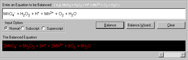 The finished equation is displayed (in red) in The Balanced Equation display box.