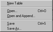 Save As - This saves the current table with a new name into the disk.