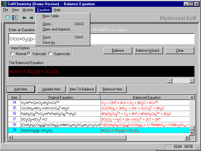 Upon successful completion of balancing an equation, click Add Item to add the database.