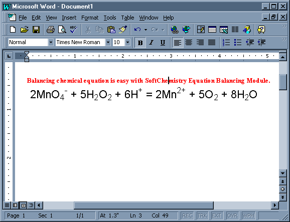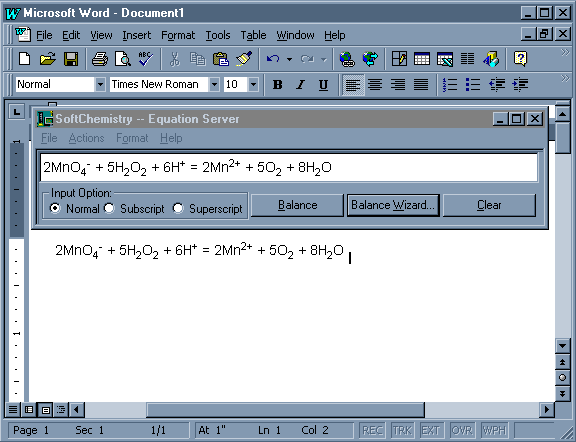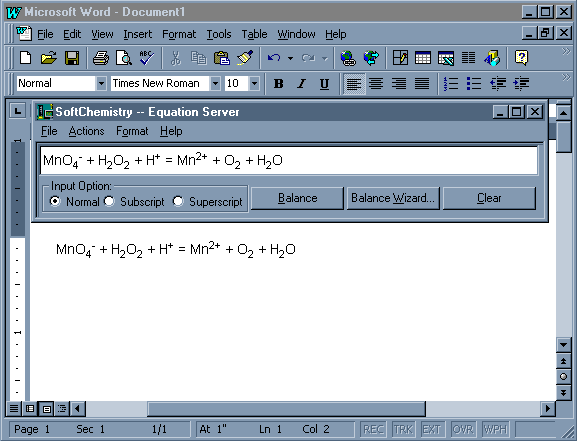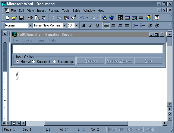 With advanced Microsoft OLE2 technology, you can use this equation balancing module in other applications, such as MS Word, ChemDraw etc. The following walkthrough shows you how to use this new feature. We will use MS Word to open Equation Module in this example.