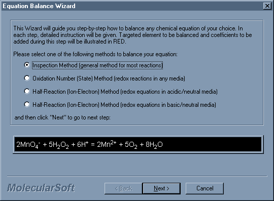 6. Click Balance. The equation is balanced by the program.